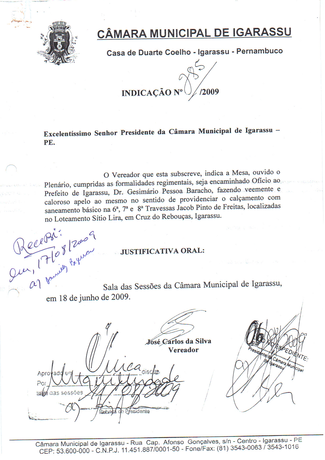 Indicação nº 285 de 2009