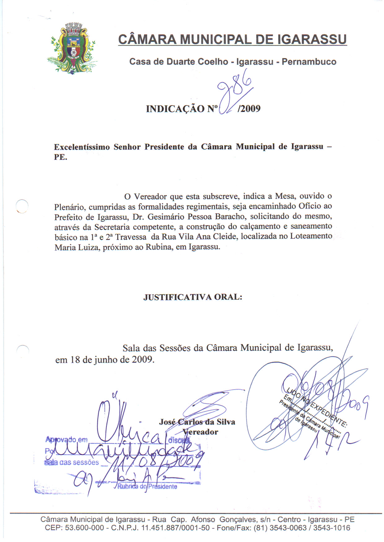 Ementa: SOLICITA A CONSTRUÇÃO DO CALÇAMENTO E SANEAMENTO BÁSICO NA RUA SÃO BENEDITO DO SUL, LOCALIZADA NO SÍTIO LIRA, CRUZ DE REBOUÇAS, IGARASSU.