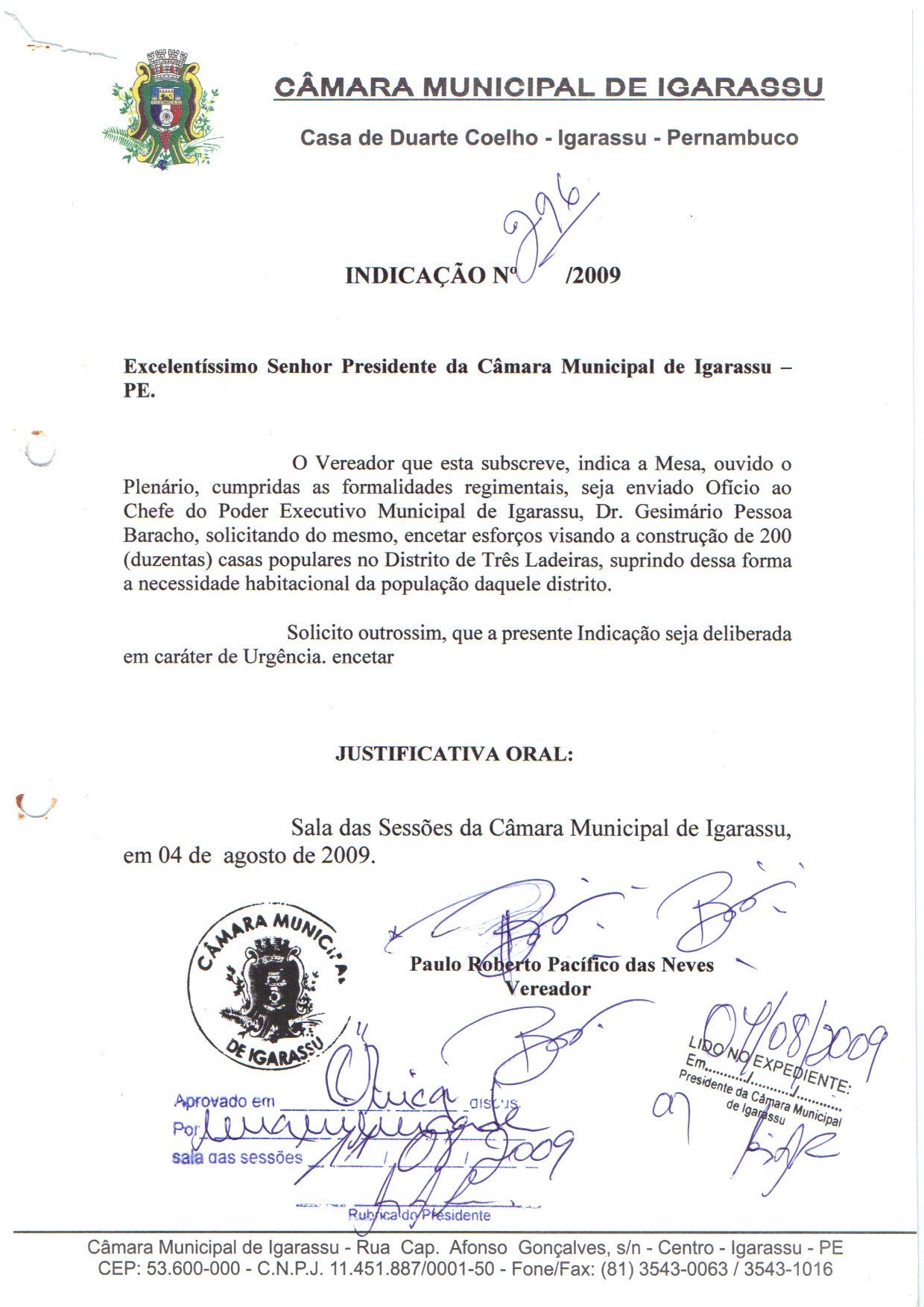 IND 296/2009 - Indicação