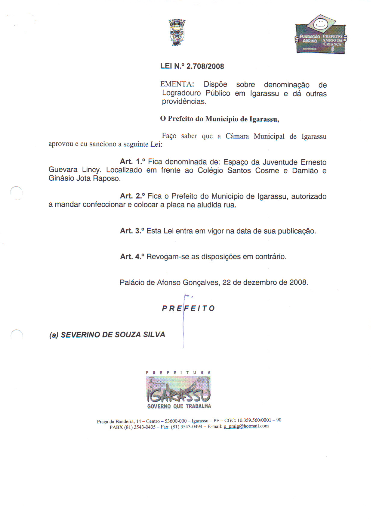 DISPÕE SOBRE DENOMINAÇÃO DE LOGRADOURO PÚBLICO EM IGARASSU E DÁ OUTRAS PROVIDÊNCIAS.
